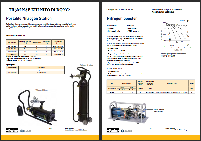 V1 = Thể tích khí nitơ ở áp suất thủy lực tối thiểu.