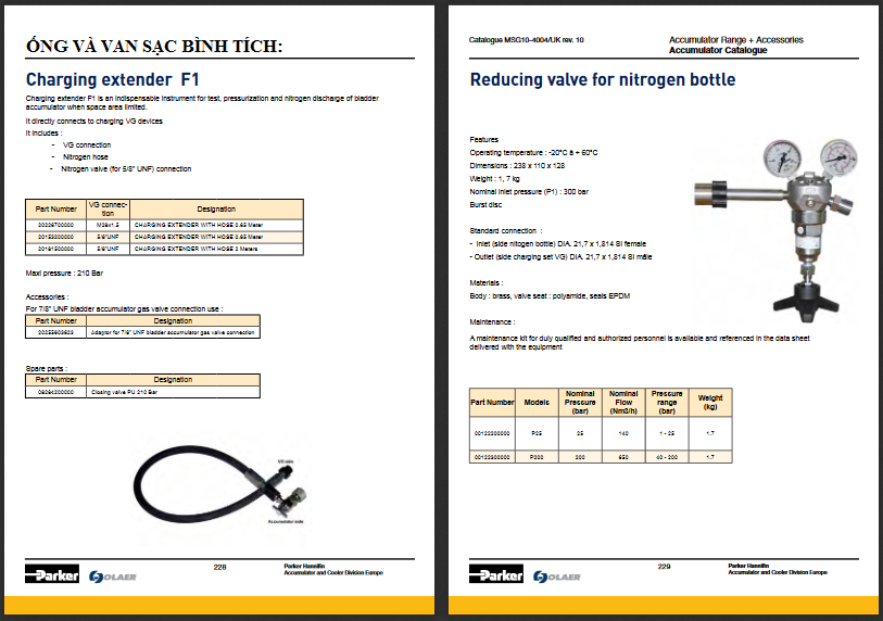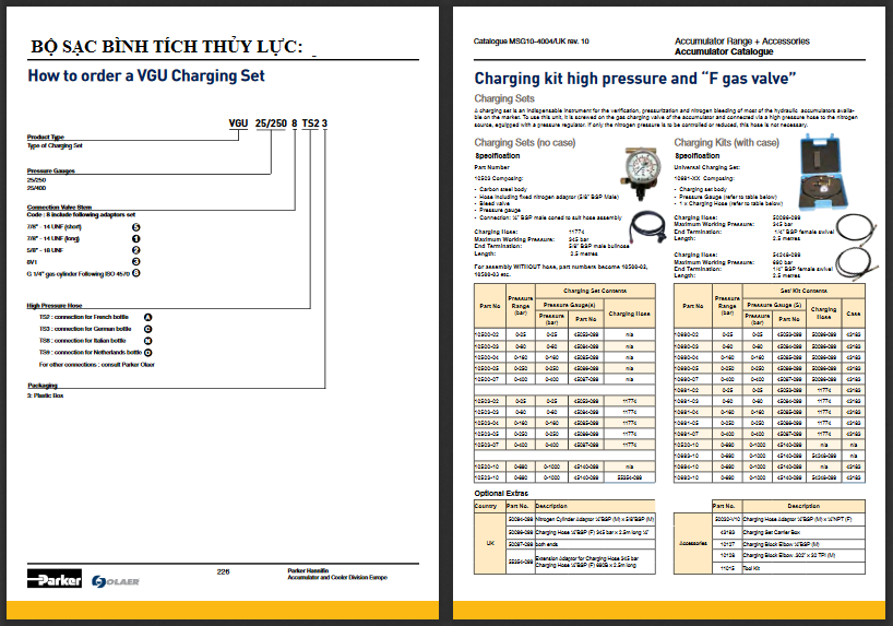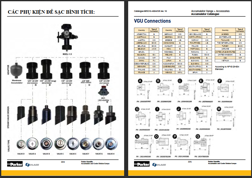 Các thông số cơ bản của bình tích thủy lực kiểu túi khí hoặc màng ngăn:
