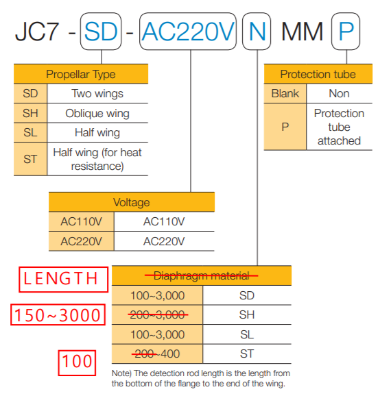 Kích thước Báo mức Parker JC7-SD-AC220V Mã đặt hàng Báo mức Parker JC7-SD-AC220V