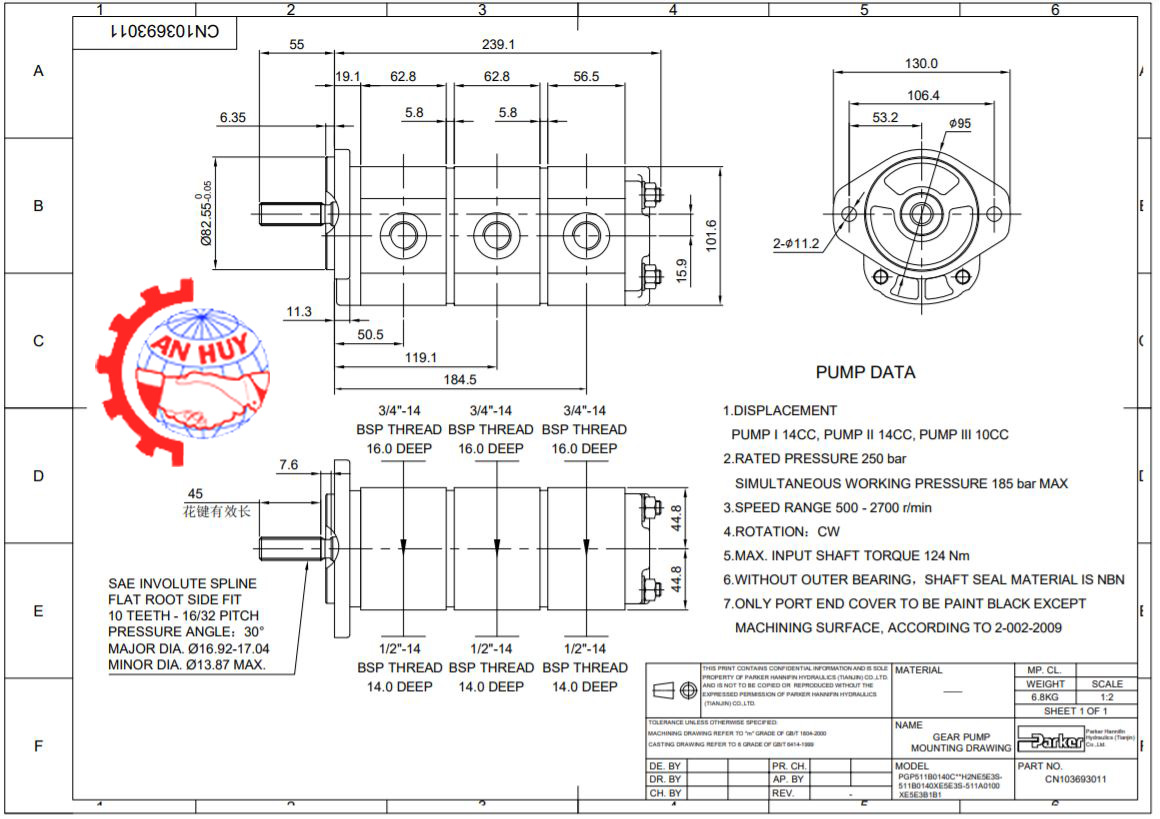 Bơm bánh răng CN103693011 theo tiêu chuẩn Parker - USA