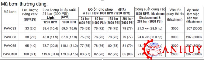 Các mã cùng chủng loại bơm piston PVAC: PVAC33, PVAC38, PVAC65, PVAC100
