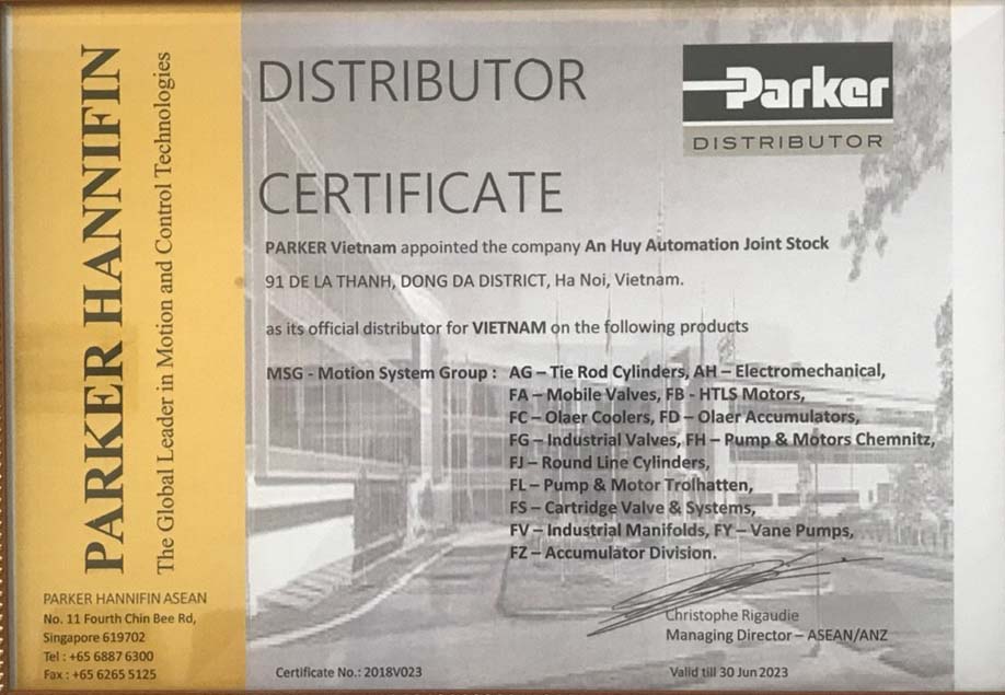 Giấy chứng nhận sản phẩm Parker chúng tôi là đại diện: