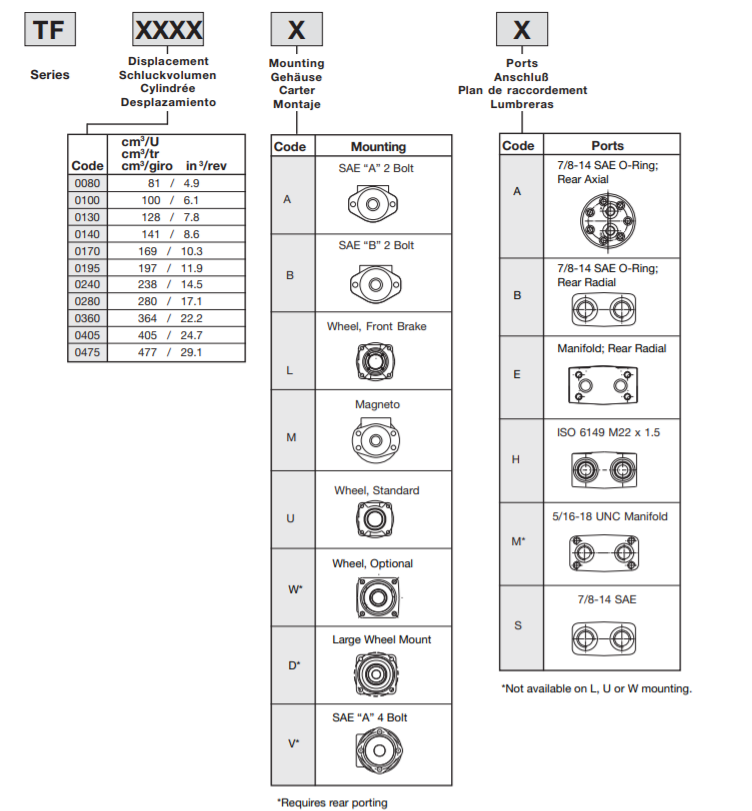 Mã đặt hàng Motor thủy lực TF0360MS240AABZ