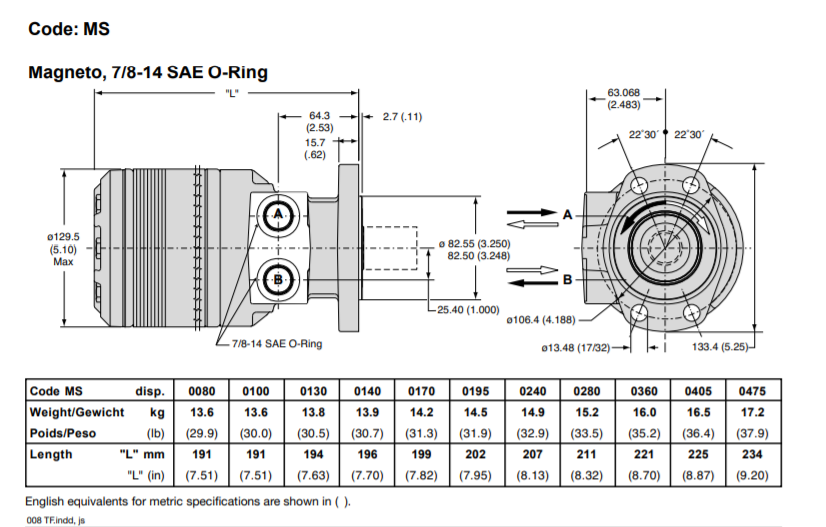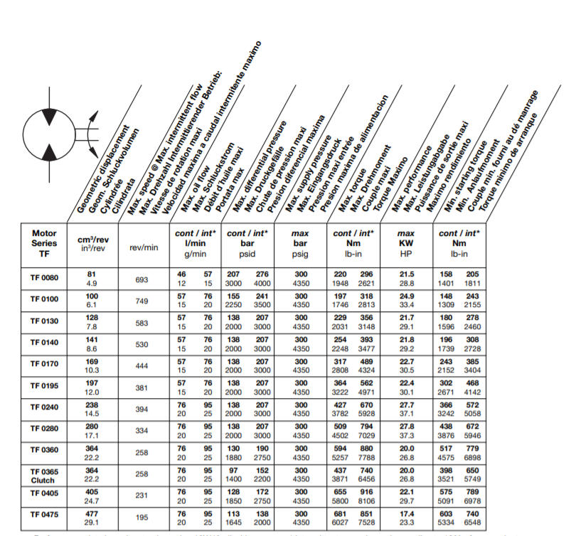 Thông số kĩ thuật Motor thủy lực TF0360MS240AABZ