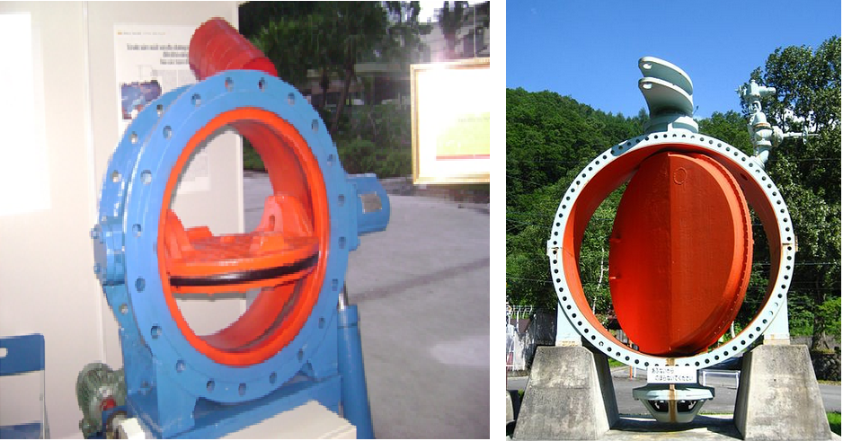Ngoài loại cánh cửa trên có thể dùng kiểu van đĩa như mô tả trên hình dưới đây các cửa van kiểu này dùng cho các đập thủy điện hoặc thủy lợi vừa và nhỏ.Với các cửa van có đường kính khoảng < 1500 mm