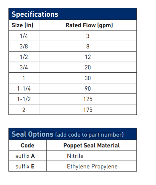 Van một chiều S6C có nhiều tùy chọn cho phép chúng để đáp ứng nhu cầu của hầu hết các hệ thống. Van có tác dụng bảo vệ hệ thống thủy lực từ dòng chảy ngược.