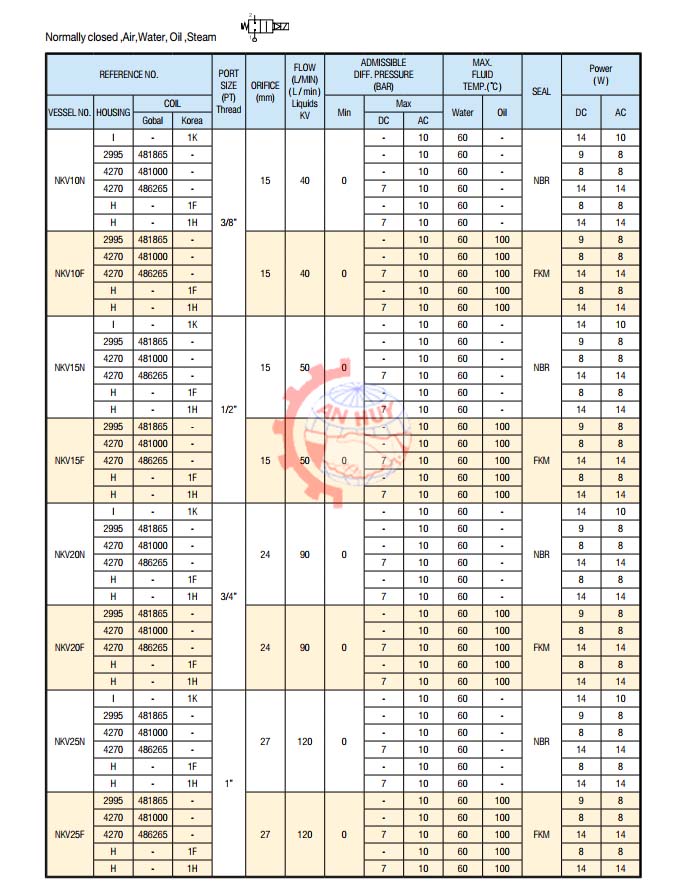 3. MÃ ĐẶT HÀNG: NKV10N, NKV10F, NKV15N, NKV15F, NKV20N, NKV20F, NKV25N, NKV25F