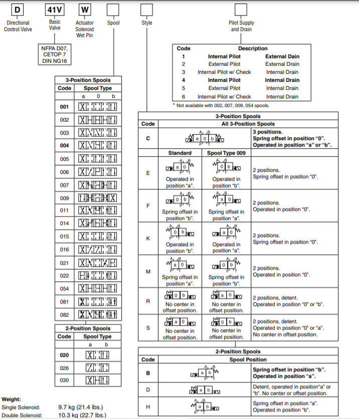 Mã đặt hàng Van điều khiển hướng D41VW004C4NTW91