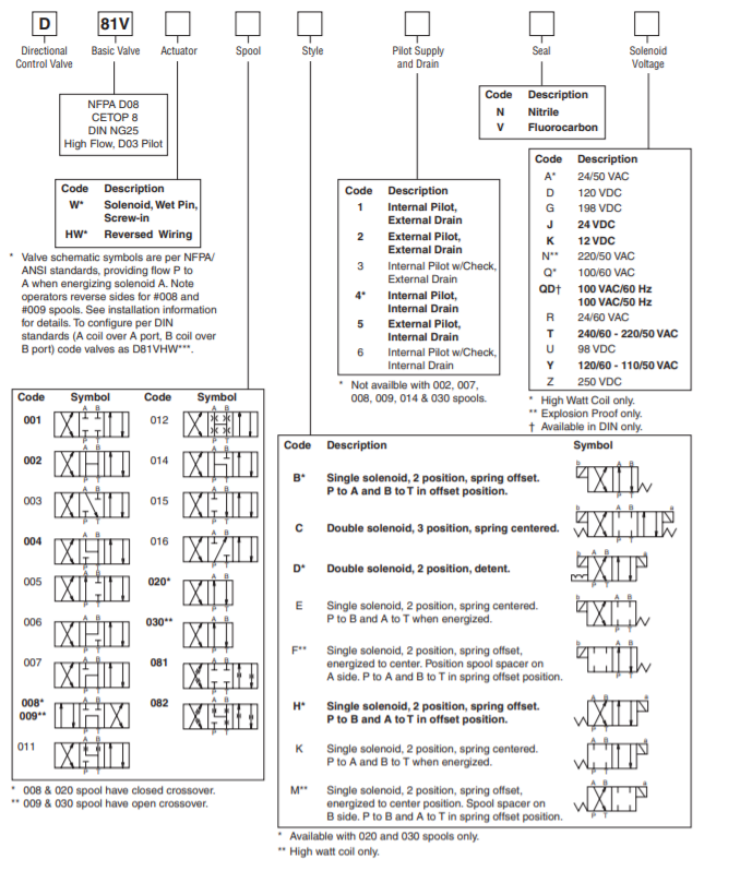 Thông số kĩ thuật Van điều khiển hướng Parker D81VW001C2NTW91 Mã đặt hàng Van điều khiển hướng Parker D81VW001C2NTW91