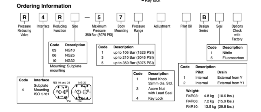 Mã đặt hàng Van giảm áp tỷ lệ R4R03-59512P2G0RB110 P/N: 028-62233-G