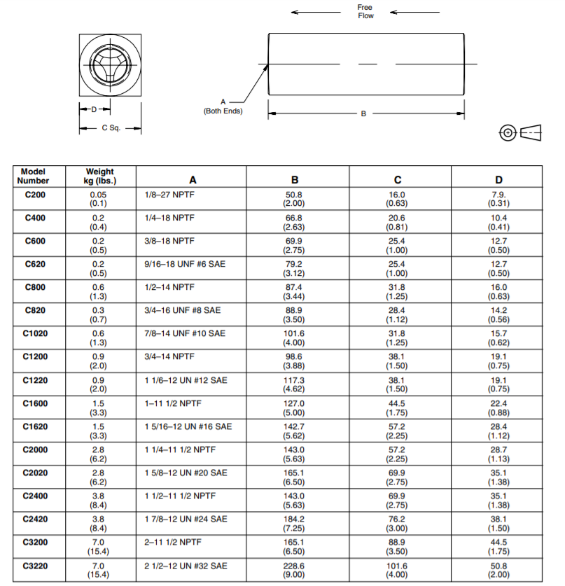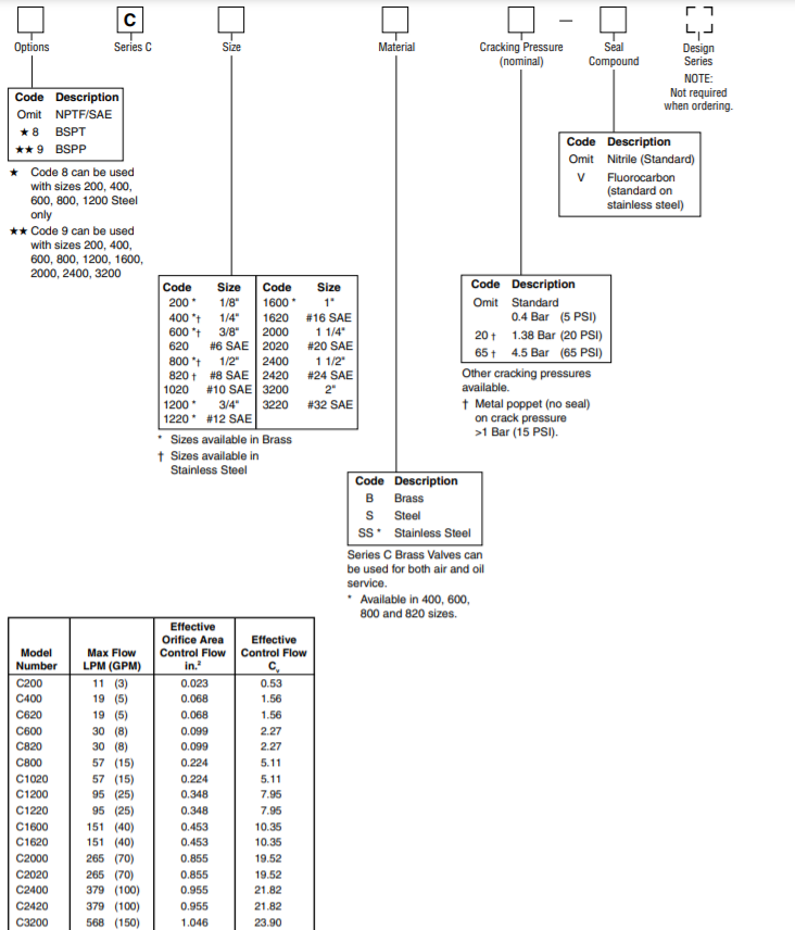 Van một chiều Parkers dòng C cung cấp cấu trúc cao cấp và tính linh hoạt với nhiều loại vật liệu, kích thước và cổng. Các van một chiều này được sử dụng trong các ứng dụng thủy lực và khí nén trên thị trường di động và công nghiệp.