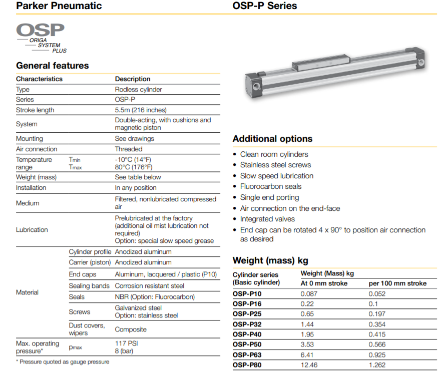 Thông số kĩ thuật Xy lanh khí nén OSPP400810001765000000000