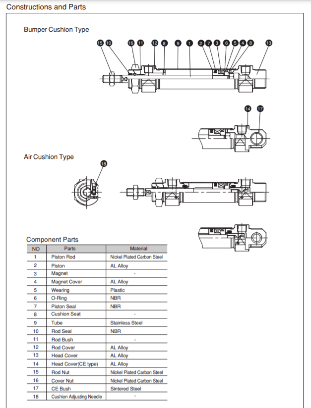 Cấu tạo và các bộ phận Xy lanh Parker PK1ACE 40*150-A