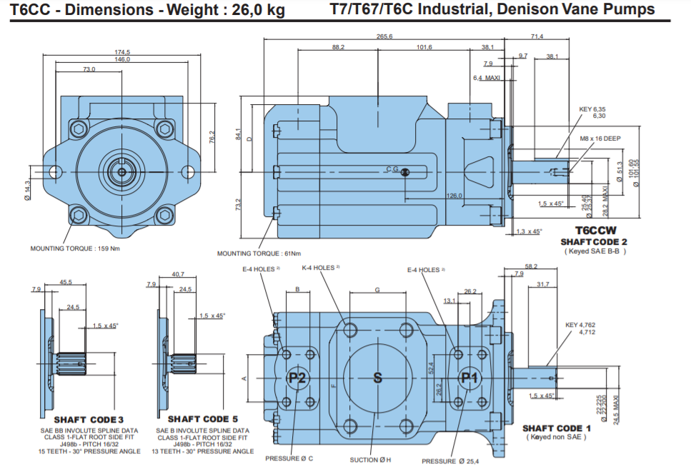 Kích thước lắp đặt Bơm cánh gạt T6CCW-017-014-2R00-C100