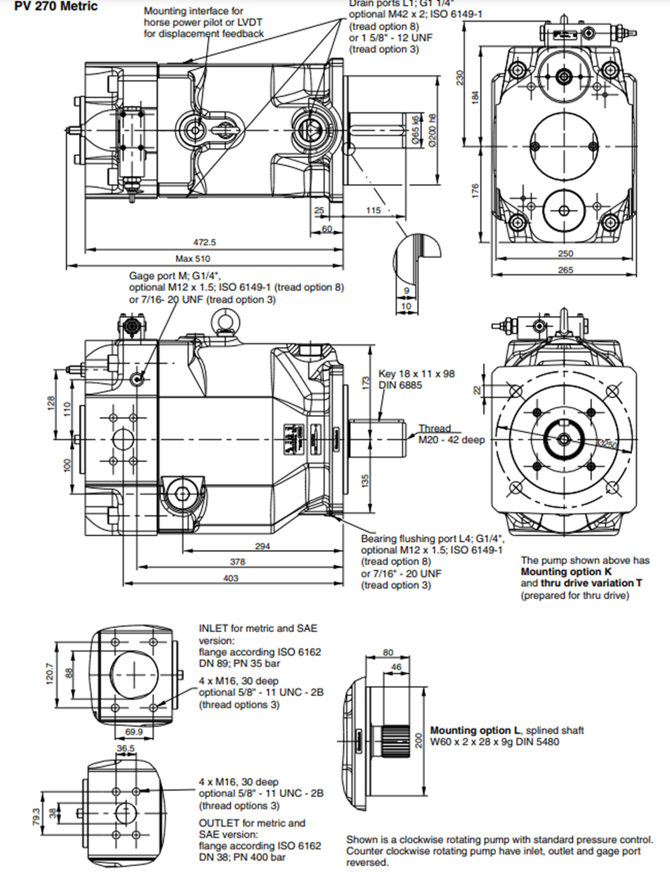 Kích thước lắp đặt bơm thủy lực piston PV270L1K1T1V3LC Parker