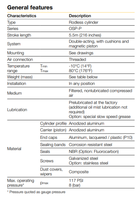Thông số kĩ thuật Xi lanh trượt khí nén model OSPP40-00000-01200-00000