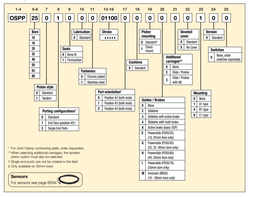 Mã đặt hàng Xi lanh trượt khí nén model OSPP40-00000-01200-00000
